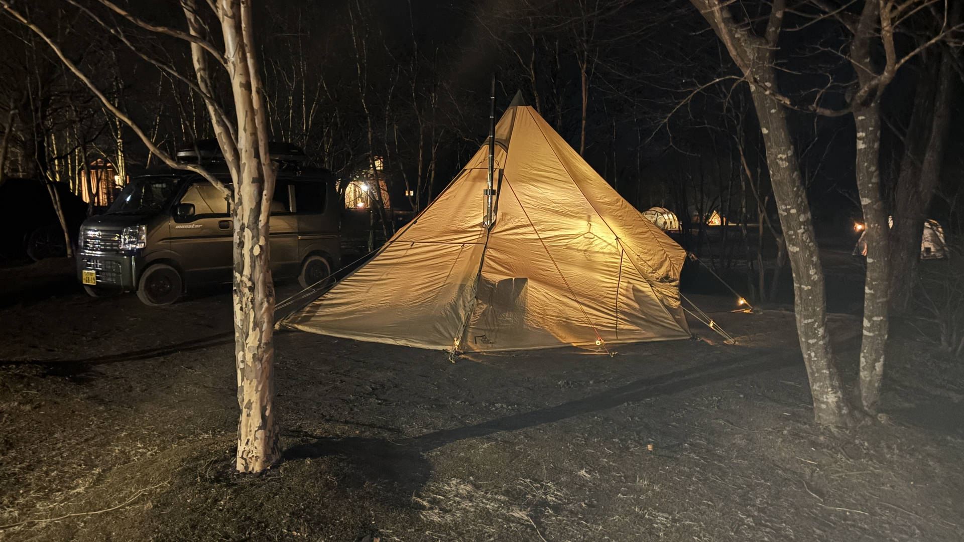 【軽バンキャンプ37】粉雪舞う夜、薪ストーブのぬくもりで年越し